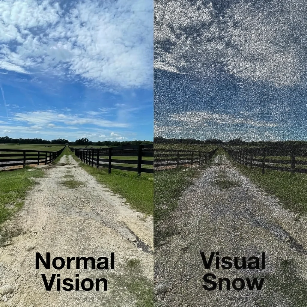 Visual snow syndrome is a neurological condition where people see a constant layer of tiny, flickering dots across their entire field of vision. It works by changes in how the brain processes visual information, not by a problem in the eyes themselves. Eye exams are usually normal, and the static is present in most lighting conditions, often worse in the dark.
